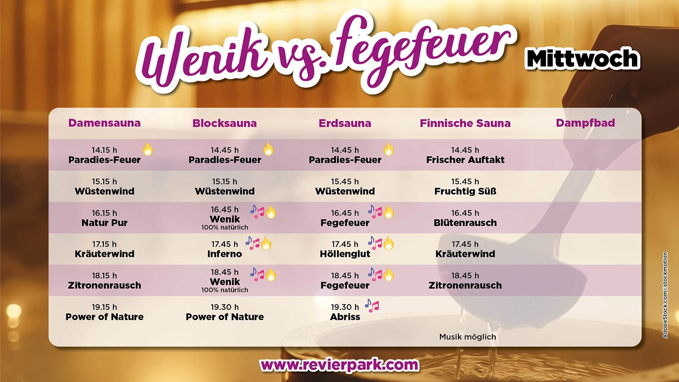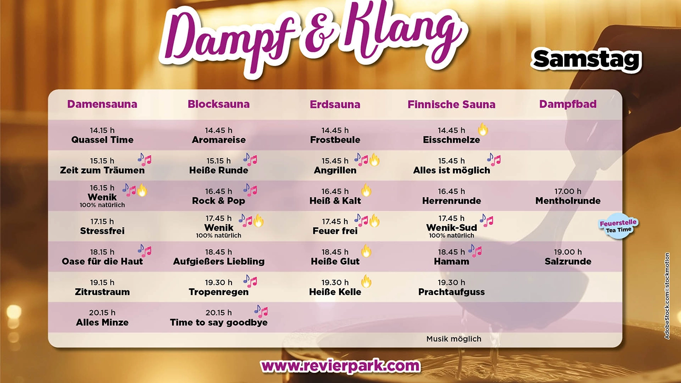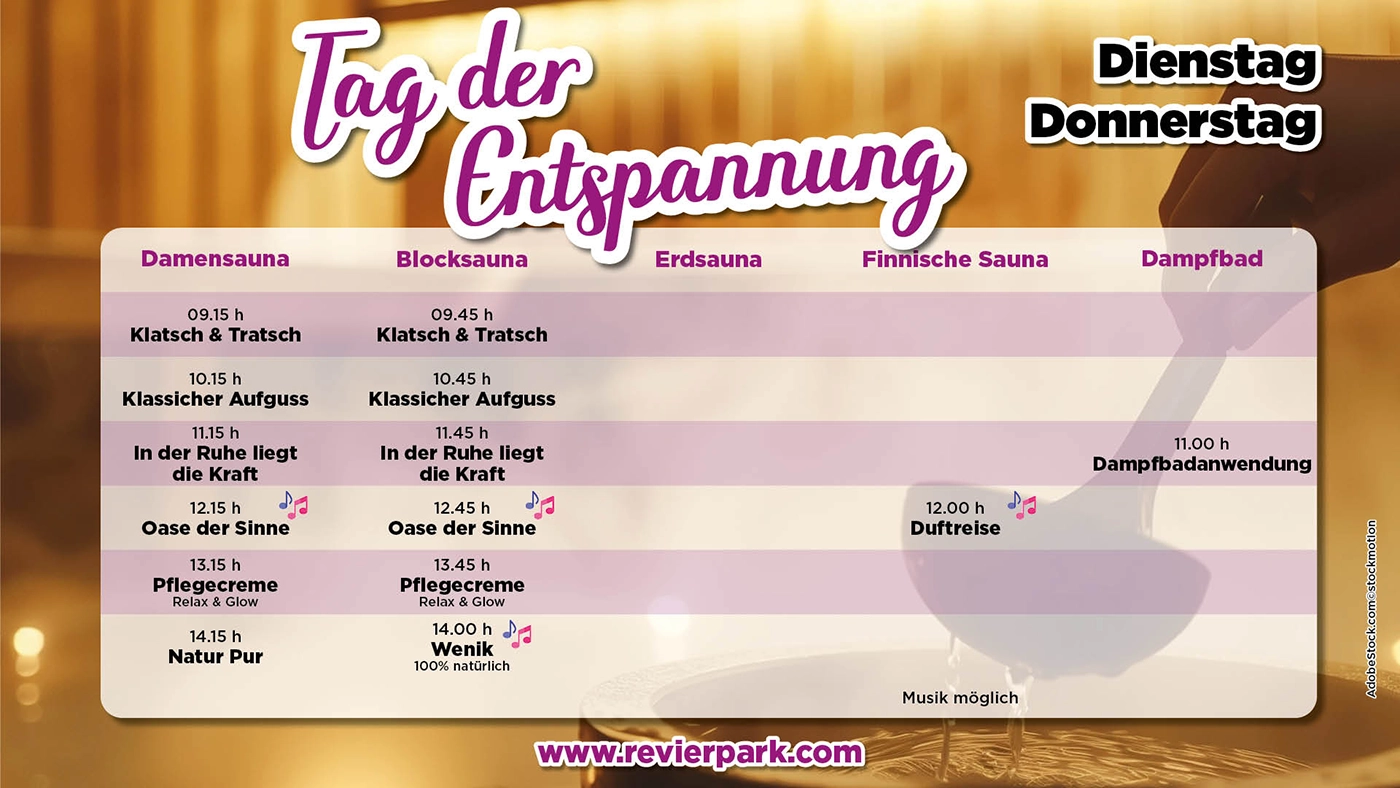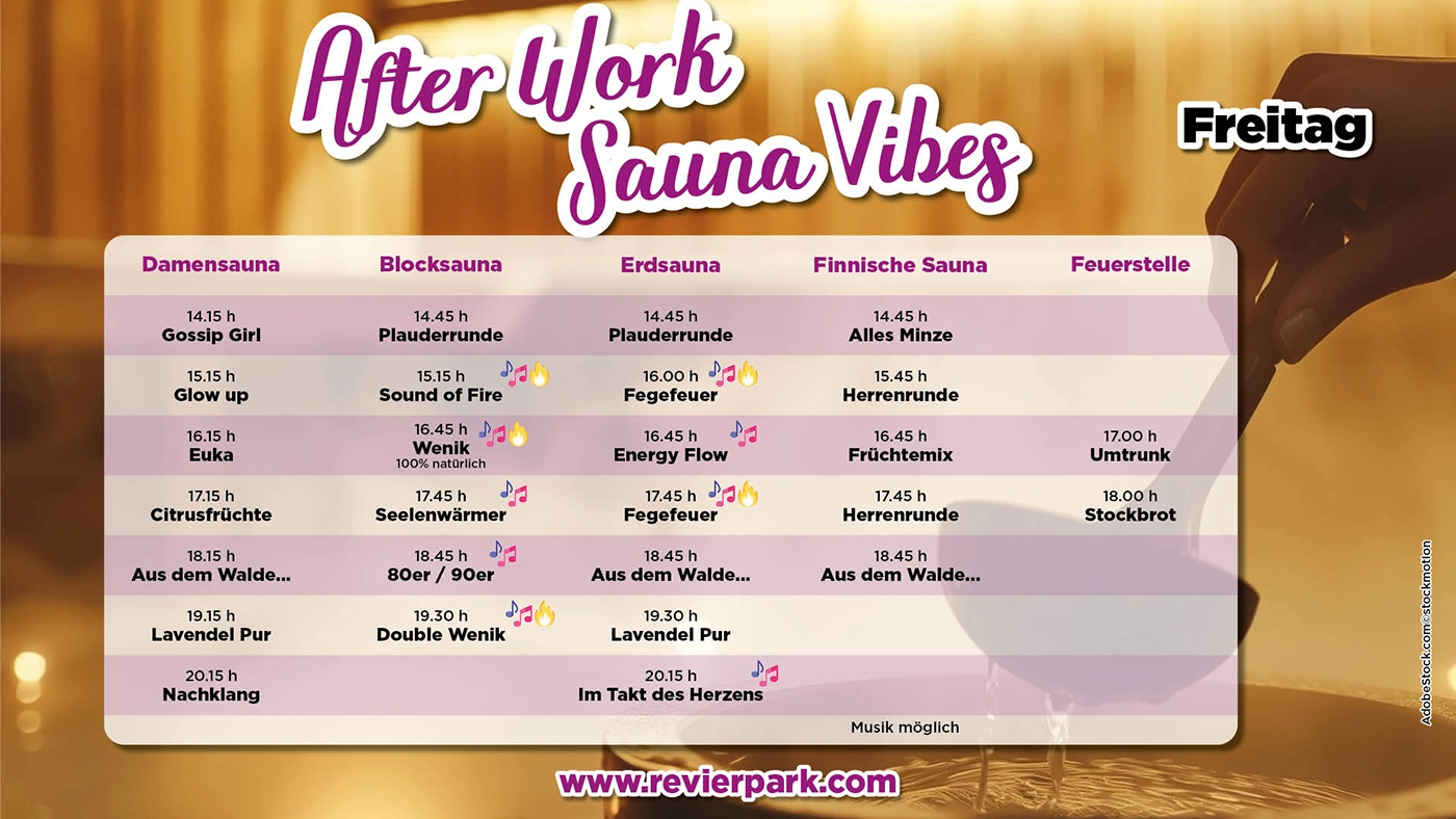Erlebe immer wieder abwechslungsreiche Spezialaufgüsse, mit neuen Spezialaufguss, mit neuen Überraschungen und Highlights 💖 Einfach an der Kasse anmelden und direkt mitbezahlen.