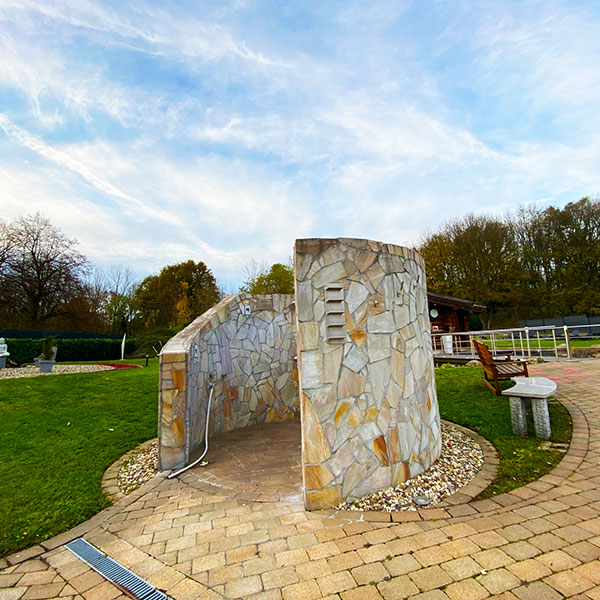 Im Saunagarten erwartet Dich das Ruhehaus mit der Flüsterstube sowie dem Raum der Stille, der Dich am knisternden Kamin nach dem Saunagang zum Entspannen einlädt. Eine Schwalldusche, eine offene Feuerstelle (die zu Sauna-Events kuschelig lodert) wie auch das große Edelstahlschwimmbecken runden die Angebote im Außenbereich ab.
